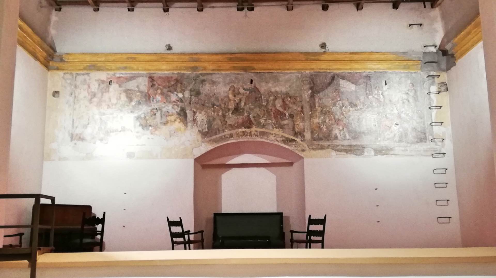 Gli affreschi nella sala teatro