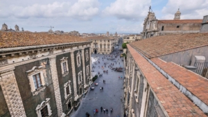 Rieccoci in città, per luoghi che sono sicurezze: oltre all’immenso Palazzo Minoriti, si potrà visitare la sede istituzionale del Comune, Palazzo degli Elefanti che cela affreschi settecenteschi, decorazioni barocche e opere d’arte; la Società Storica Catanese (che conoscono solo i cittadini e neanche tutti) con la “stanza dei re” e documenti dal 1816 al dopoguerra; il Museo Vincenzo Bellini dedicato al compositore; palazzo Asmundo di Gisira trasformato in hotel di charme; l’ex industria delle calzature Ega, 850 metri quadrati, su tre livelli in stile Decò, che nasconde un passaggio segreto verso il teatro Dusmet. Sali su e trovi Terrazza Agata, il belvedere sullo stesso complesso, dove leggere la mano di padre e figlio architetti, Carmelo e Salvatore Sciuto Patti.