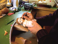 Il Bambinello dormiente, San Giorgio che trafigge il drago, la Santuzza Patrona di Palermo: opere rigorosamente scolpite a mano e decorate con coralli, argenti e pietre. Come gli antichi bambinai, Luigi Arini realizza presepi e immagini sacre in cera e decorazioni preziose, mettendo insieme tre antiche tradizioni siciliane: la ceroplastica, l’arte del corallo e degli argenti. Domus Artis è un’impresa familiare a due passi da Casa Professa e Ballarò, che perpetua le antiche tecniche seicentesche di cesellatura e lucidatura della cera. Nella realizzazione di ogni singola opera l’officina d’arte si attiene rigorosamente ai Canoni Tridentini, dove furono stabiliti materiali, colori e simbologia per l’iconografia religiosa cristiana. Ma Arini è capace di restaurare opere che sembravano perdute, come quei bambinelli ridotti in mille pezzi, che con uso sapiente del calore, possono tornare come nuovi.