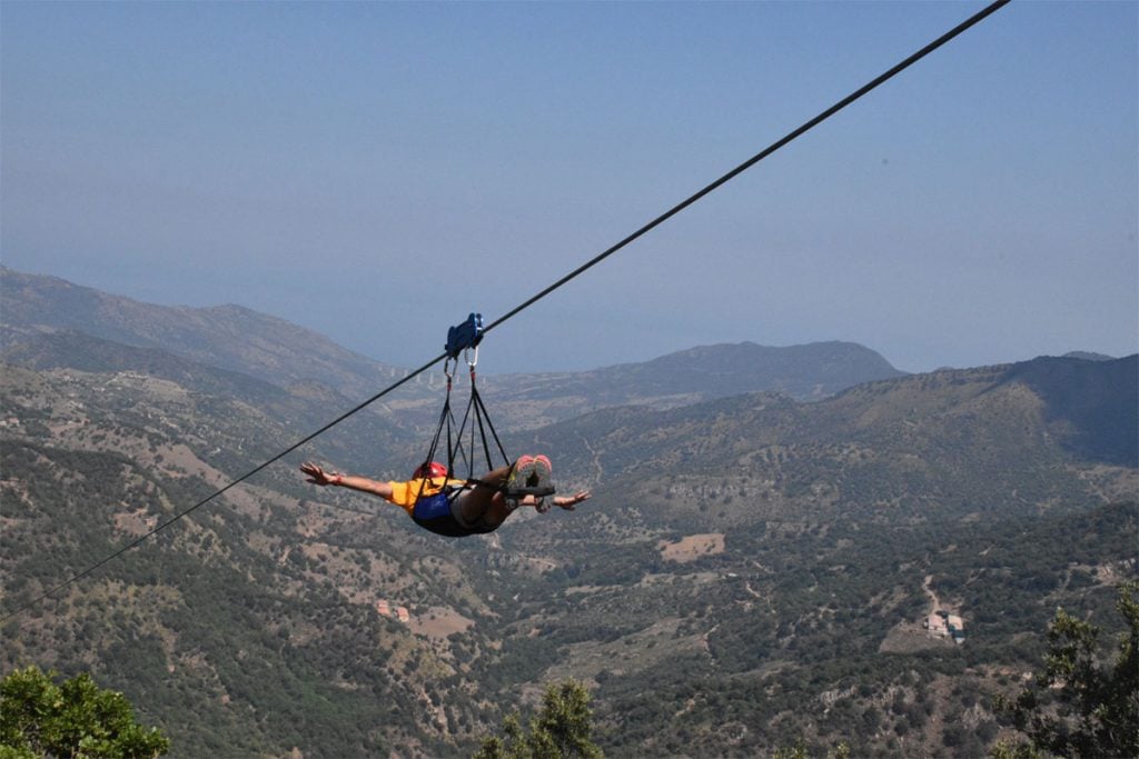 Volare a cento chilometri orari tra le valli delle Madonie. un minuto e mezzo di pura adrenalina sospesi nel vuoto a trecento metri d’altezza. Sono emozioni forti quelle della prima zipline siciliana, un cavo lungo 1650 mentri. Si spicca il volo da una postazioone installata vicino all’ex convento dei Benedettini, alla periferia del paese, per “atterrare” lungo la strada provinciale che dal centro abitato conduce alla frazione Borrello. Si è appesi a una teleferica d’acciaio, con un a pendenza del 16 per cento, tirata tra due punti diversi alla quale si aggancia su una carrucola fornita di un dispositivo frenante magnetico. Si possono scegliere tre modalità di volo: quella classica a pancia in giù, quella da seduti, aggrappati alla carrucola. Una corsa tra le nuvole in tutta sicurezza. Età minima 12 anni, peso minino 40 kg, massimo 120 kg. In coppia peso max 140 kg