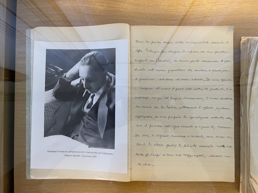 Visitare lo studio e il salone dove si mosse Giuseppe Tomasi di Lampedusa, guidati personalmente dalla duchessa Lanza Tomasi, moglie del figlio adottivo dello scrittore, il musicologo Gioacchino Tomasi scomparso un anno fa. Sarà una visita delicatamente letteraria, quella all’ultima dimora dell’autore de “Il Gattopardo”, srotolata nei saloni del piano nobile, con la sua terrazza sulle Mura delle Cattive; tra arredi che sono vere opere d’arte, libri e spartiti, arrivando a quello che è il cuore del percorso, l’edizione manoscritta del romanzo che come pochi altri, ha segnato l’immaginario collettivo e la riflessione sulla Sicilia. Sarà un modo per entrare nella vita straordinaria della nobile famiglia, scorrendo le migliaia di titoli della biblioteca, le fotografie, i mobili preziosi provenienti da Palazzo Lanza di Mazzarino, da Palazzo Lampedusa che fu distrutto sotto le bombe alleate del ‘43; e dal Palazzo di Santa Margherita Belìce, la residenza estiva dei Filangeri di Cutò, la famiglia materna dello scrittore. Una storia umana e letteraria straordinaria, quella di Tomasi, che ne intreccia tante altre, a partire da quella della moglie, la principessa Alexandra Wolff Stomersee, (Licy), allieva di Freud, prima donna a guidare la Società psicoanalitica italiana; ma anche la madre, la severa Beatrice Mastrogiovanni Tasca di Cutò che mai “accettò” la principessa baltica scelta e amata dal figlio.