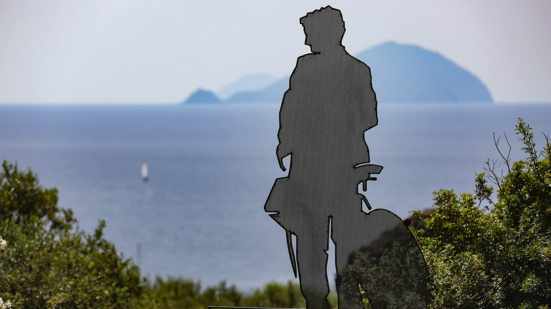 - Sagoma che raffigura Massimo Troisi lungo il sentiero del Postino (foto Igor Petyx)